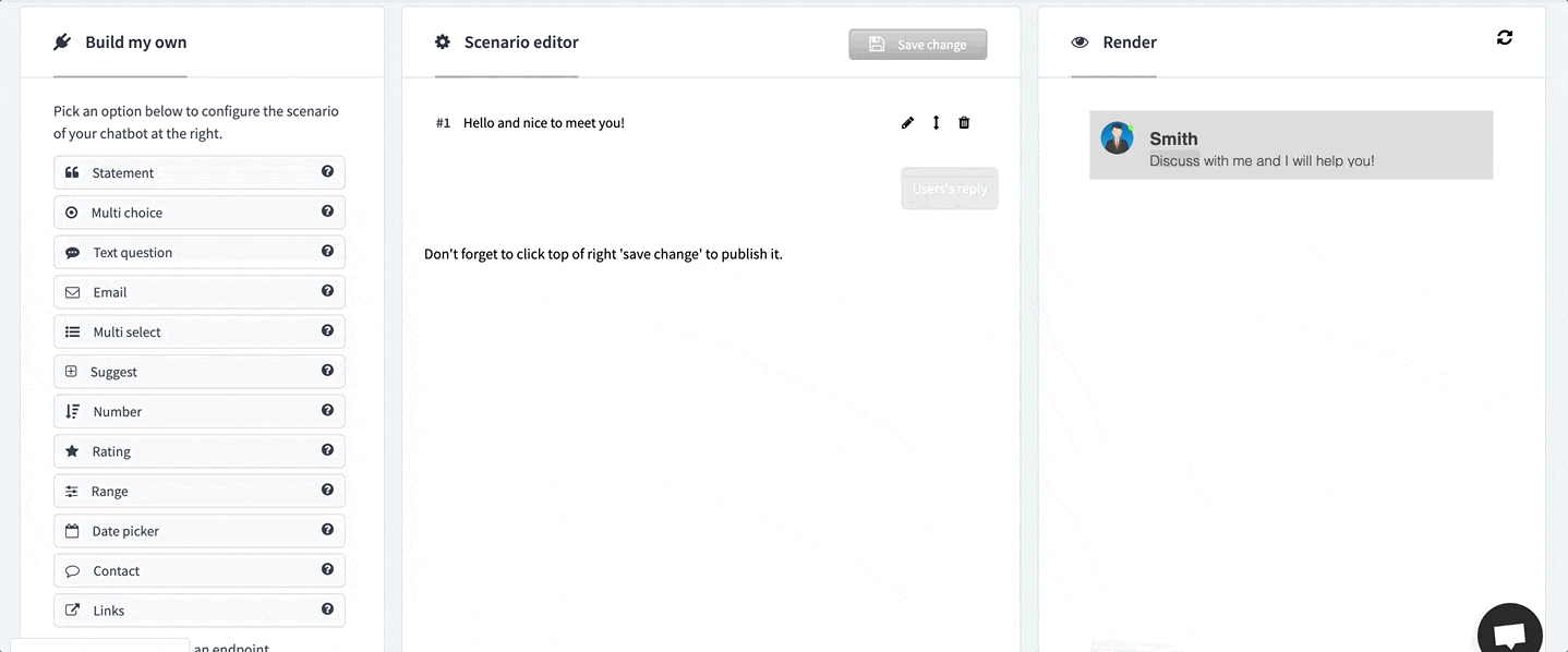 - Personnalisez le scénario de votre chatbot